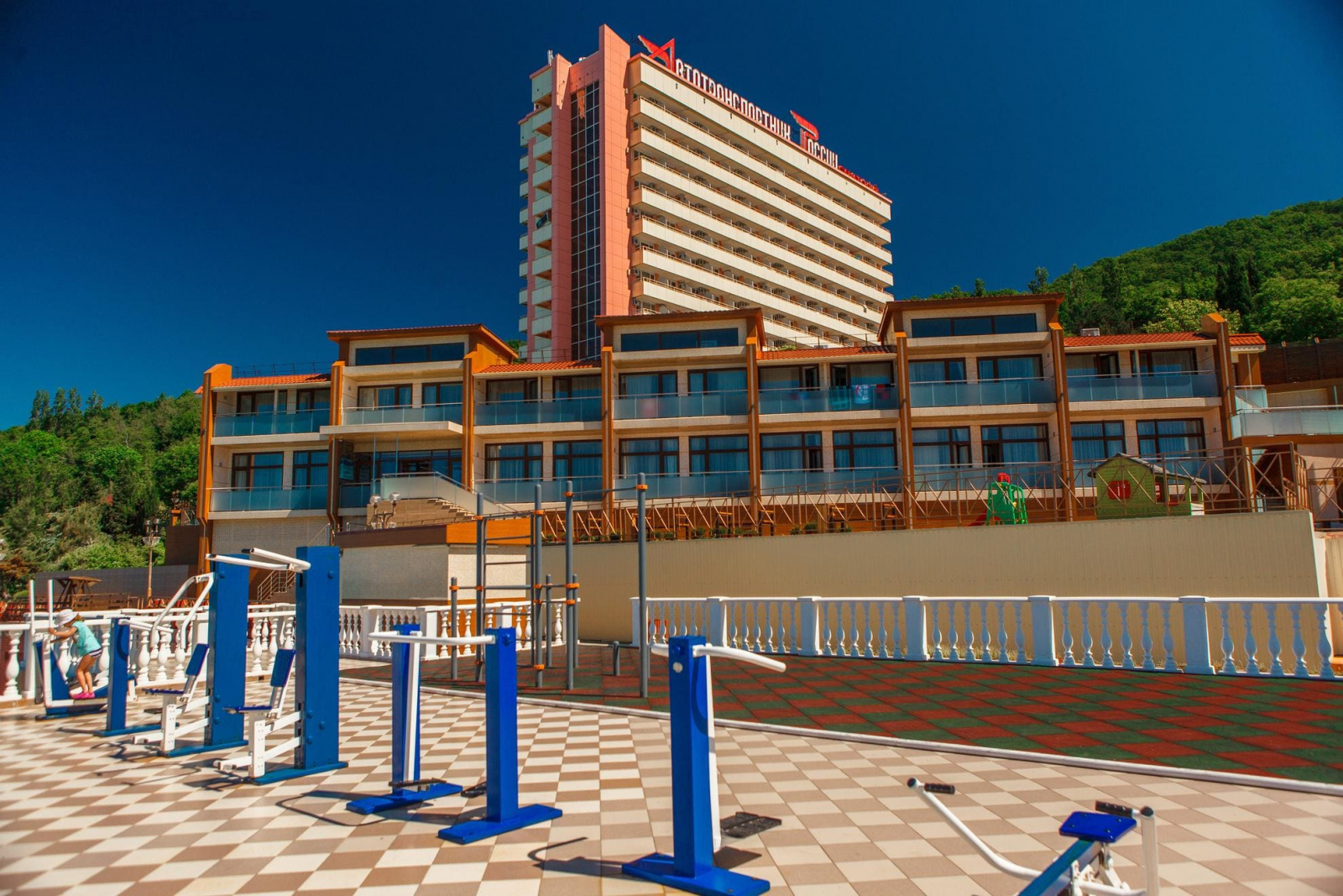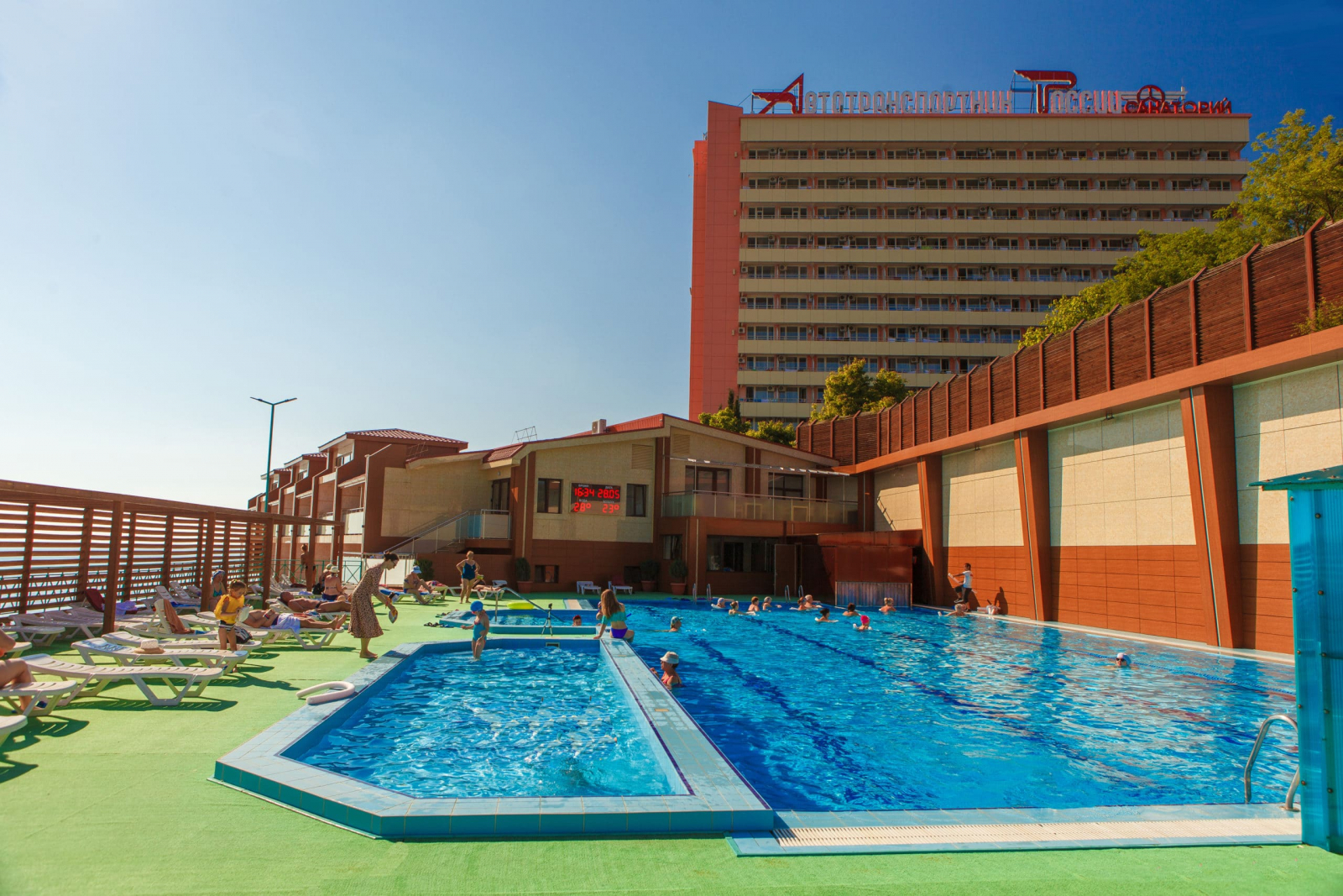 Комплекс имеет мощную лечебную и диагностическую базу для лечения различных недугов, в том числе разных заболеваний опорно-двигательного аппарата, сердца, органов дыхания, а также других заболеваний у взрослых и детей. Общая территория санатория, на которой расположено множество реликтовых деревьев и растений, составляет 5,3 гектаров. Туристы могут выбрать проживание в номере одной категорий: «Стандарт», «Супериор», «Люкс», «Делюкс». В каждом номере, балкон, спутниковое телевидение, холодильник, мебельный гарнитур, телефон, радио, санузел с душем. В 2018 году открыт новый корпус «Лагуна». Это 2-этажный спальный корпус повышенной комфортности с современным дизайном , выходом к бассейну и сауне. Из каждого номера открывается панорамный вид на море. В стоимость приобретаемой путевки входит 3-х разовое питание (в период с июня по сентябрь включительно– шведский стол, в межсезонье - заказное меню с элементами шведского стола). Столовая располагается на 2-м этаже 12-ти этажного спального корпуса санатория и состоит из трех оснащенных современным оборудованием и системой кондиционирования обеденных залов: общий, VIP-зал, и детский (специально оборудованный зал с приставными стульчиками для приема пищи гостей с детьми, общей вместимостью на 200 мест в смену.